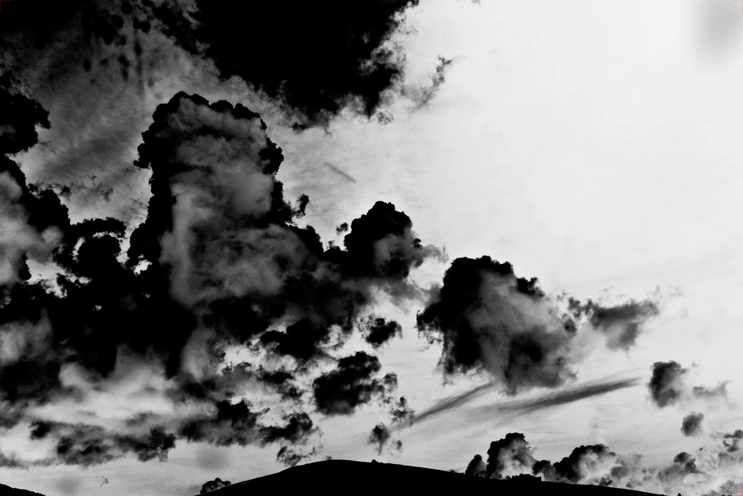 Dans Noir de carbone, son travail repose autant sur l’expérience scientifique que l’expérience artistique. Son ambition ici est de rendre visible les polluants atmosphériques que nos corps intègrent, responsables de plusieurs milliers de décès chaque année. Elle se rend alors sur l’île de Fair en Grande-Bretagne, sur la piste d’un flux invisible toxique. Chaque jour, elle suit cette trace, munie d’un masque FFP2, filtrant les particules respirées. Ces bribes, spectres de nos sociétés industrialisées, sont ensuite transformées en encre et appliquées sur le support photosensible, rendant palpable ce qui échappe habituellement à notre perception. Chaque image est en partie façonnée par les particules de carbone recueillies dans le ciel même qu’elle représente. L’intensité des noirs traduit alors la densité de pollution présente dans l’air. Le polluant qui traverse nos poumons devient matière de l’image, et le corps de l’artiste, à la fois capteur et témoin, s’inscrit dans le geste photographique. Noir de carbone interroge ainsi non seulement notre regard sur le ciel, mais aussi notre rapport à l’air que nous respirons, à notre propre vulnérabilité et à la porosité de nos corps face aux désastres environnementaux.