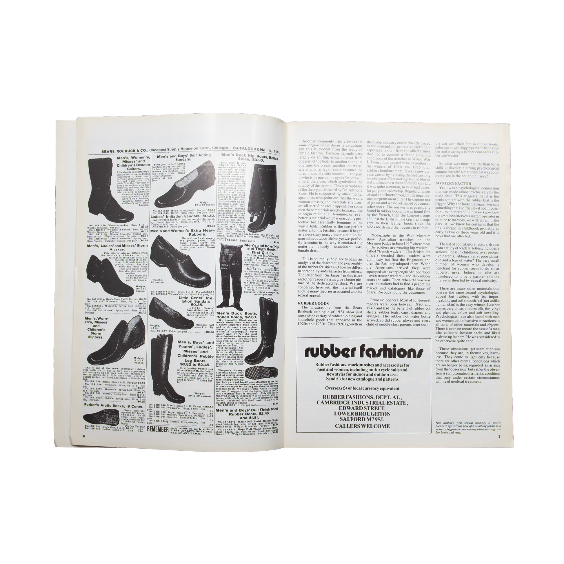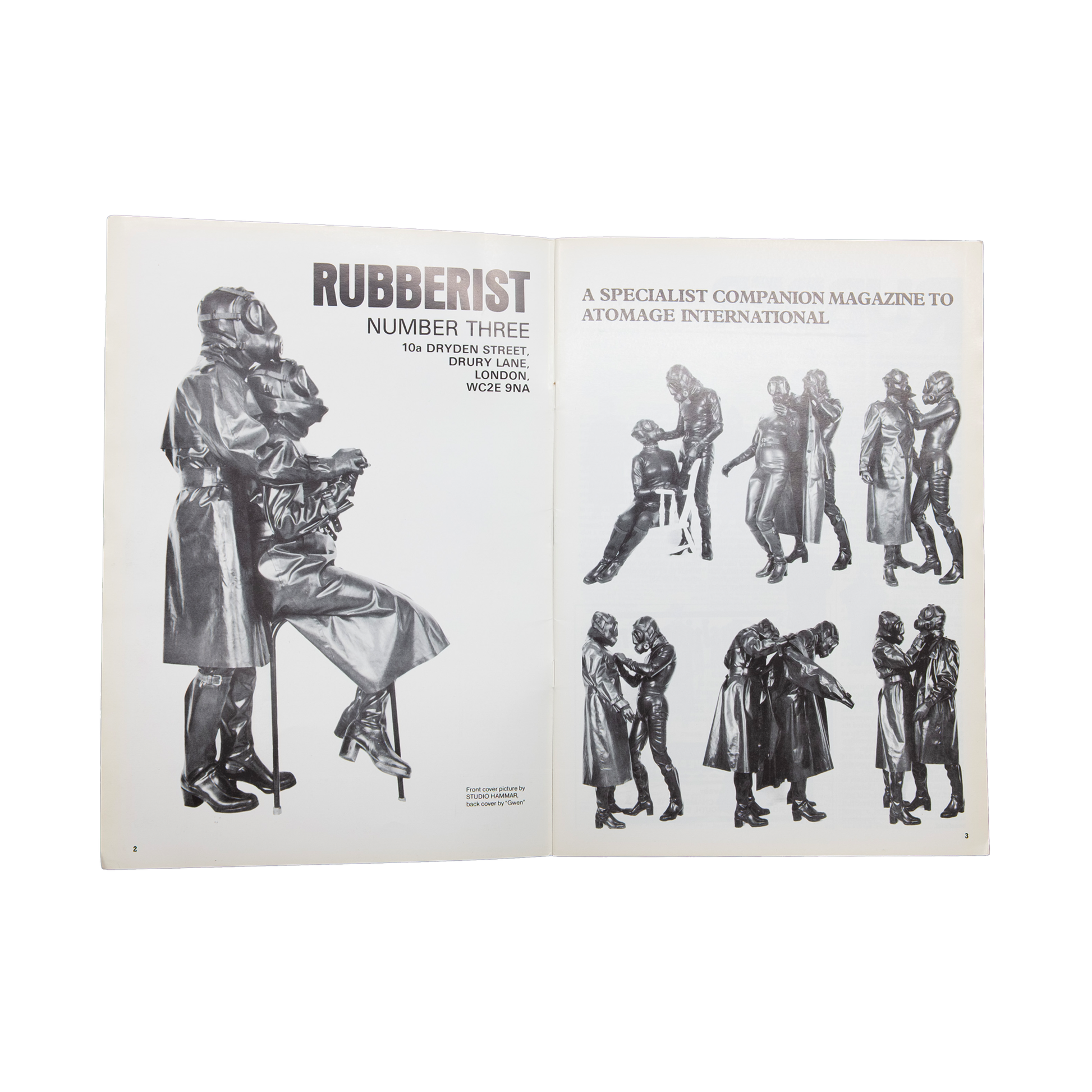 Voici l'objet de collection essentiel : le supplément spécial en édition limitée « The Rubberist » numéro 3 du magazine AtomAge. Durant les années 70 et 80, ce magazine, créé et publié par John Sutcliffe, n'était rien de moins que la bible clandestine des explorateurs du cuir, du vinyle et, surtout, du latex. Ce numéro spécial est massif dans son politiquement incorrect, et c'est ce qui en fait une pièce si géniale. AtomAge a transformé une simple passion sexuelle en un véritable phénomène social. L'ouvrage réussit à combiner des clichés de créations vestimentaires extraordinaires, souvent réalisées par les lecteurs eux-mêmes, avec une urgence d'expression. En fait, les photographies sont le reflet d'une époque d'enthousiasme avant que le fétichisme ne devienne l'industrie formatée que l'on connaît aujourd'hui, ou une référence récurrente de l'industrie de la mode des dernières années. C'est l'histoire, la vraie. Ces pages dressent involontairement le portrait d'une banlieue dont l'évasion par le plaisir vestimentaire était une nécessité absolue.